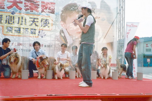 因為這次場地在美麗華廣場,也就是在馬路邊,為了安全起見,比賽由人帶著狗跑