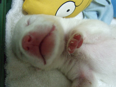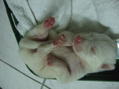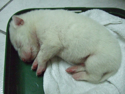 朋友的姑姑在太陽下的停車場撿到這隻未開眼的小白狗
