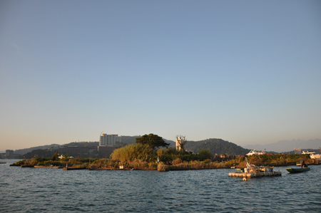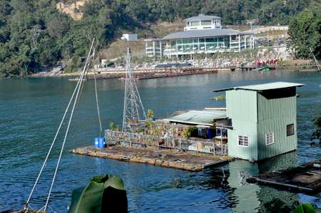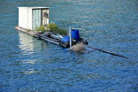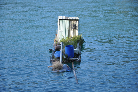 有草.有保力龍.有水管.就這樣奇妙的飄在水面上