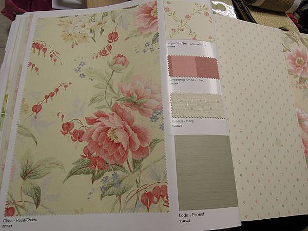 左邊是窗紗,最右邊是壁紙,好浪漫的鄉村風格喔